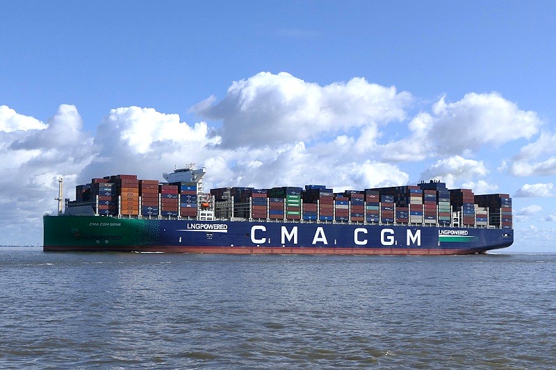 23.09.2025: Dort passierte gegen Mittag die vom Eurogate Container Terminal Hamburg gekommene MS CMA CGM SEINE die Seebäderbrücke in Richtung Antwerpen: