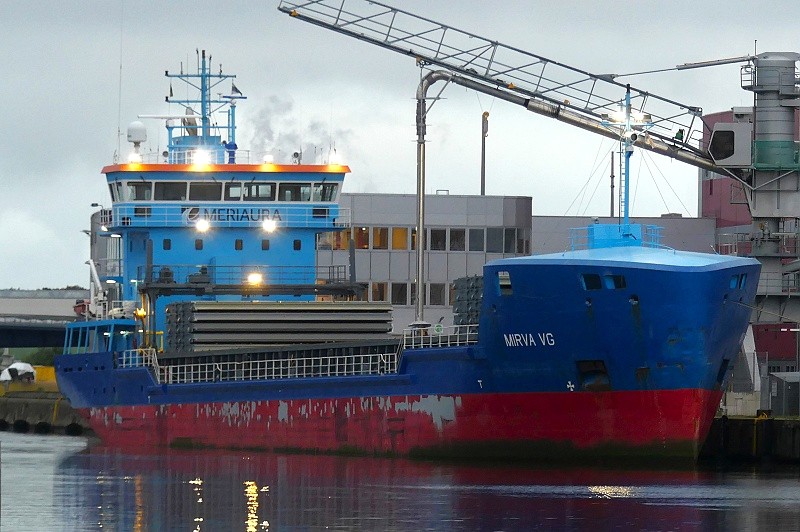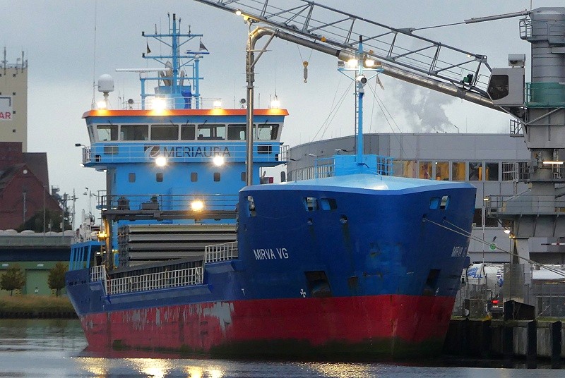 - MS MIRVA VG ( OJRN, Finland, 103 m, IMO 9769116 ) bei Brüggen