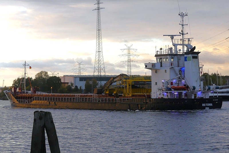 Am frühen Abend lief die MS RIX TERRA nach Lübeck ein…gegen 18:00 Uhr passierte sie Schlutup auf dem Weg zum Vorwerker Hafen: