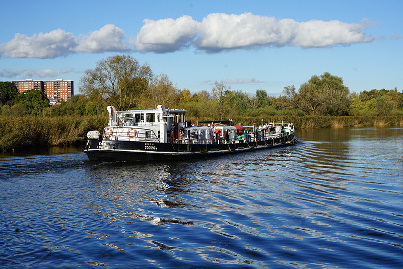Am Nachmittag lief das Tankmotorschiff KATHI im Elbe-Lübeck-Kanal in Richtung Lübecker Klughafen: