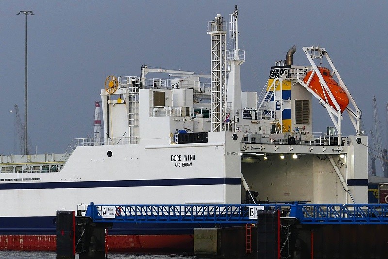 Heute kommen die Bilder mal aus dem Rostocker Hafen…dort lag heute die MS BORE WIND am RoRo-Terminal Liegeplatz 63…sie machte am Vortag fest mit Papierrollen aus Rauma für UPM Rostock: