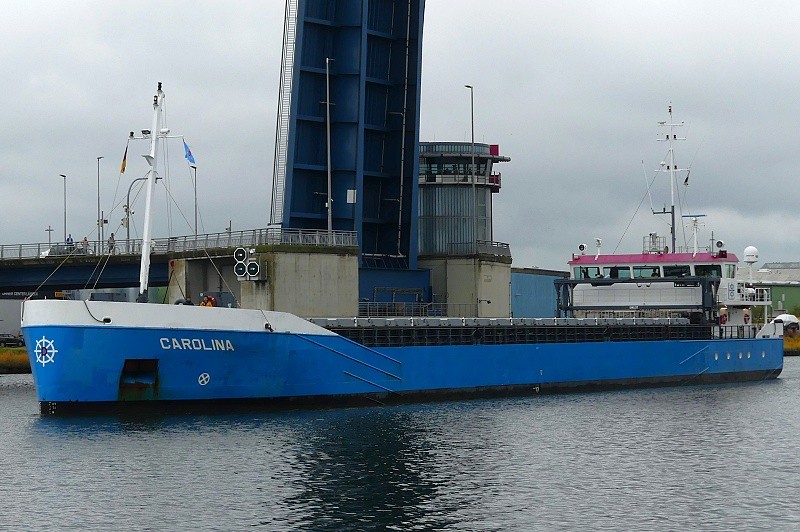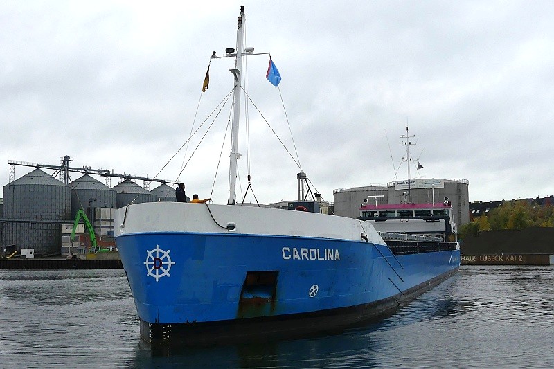 - MS CAROLINA ( PHMZ, Netherlands, 83 m, IMO 9382748 ) am Lagerhaus Lübeck