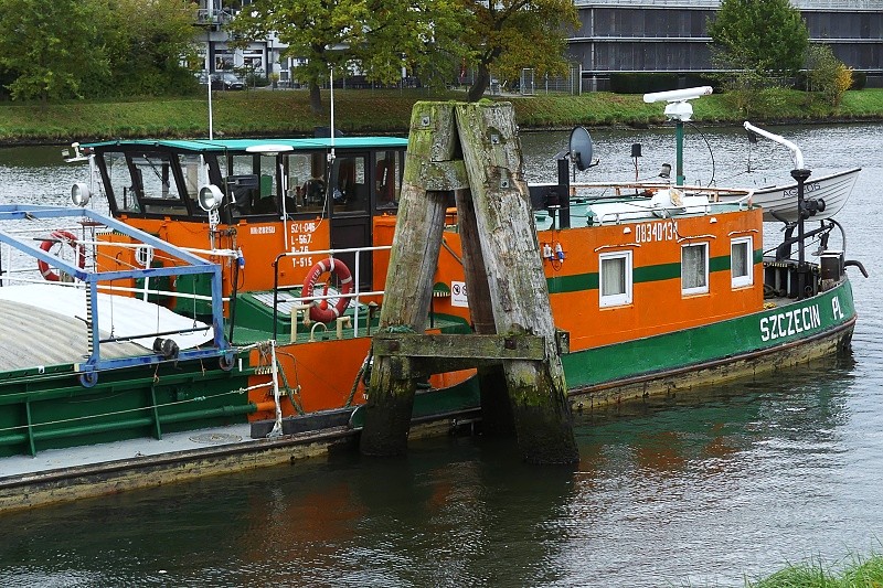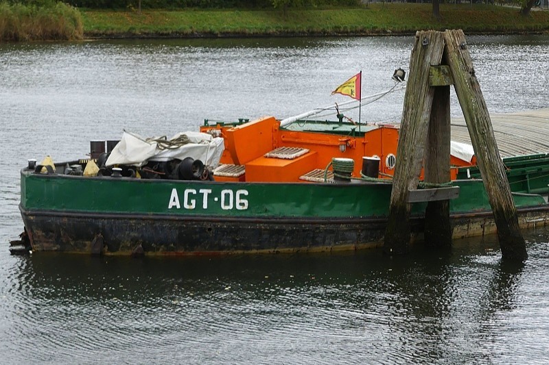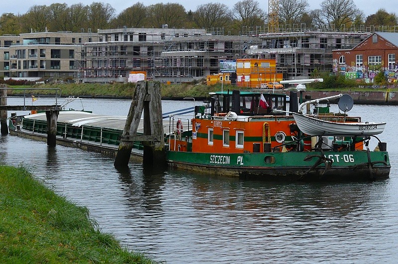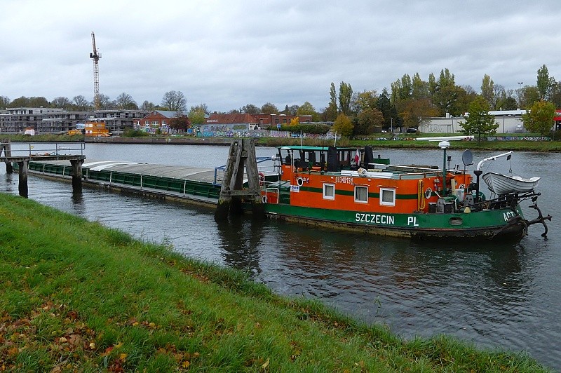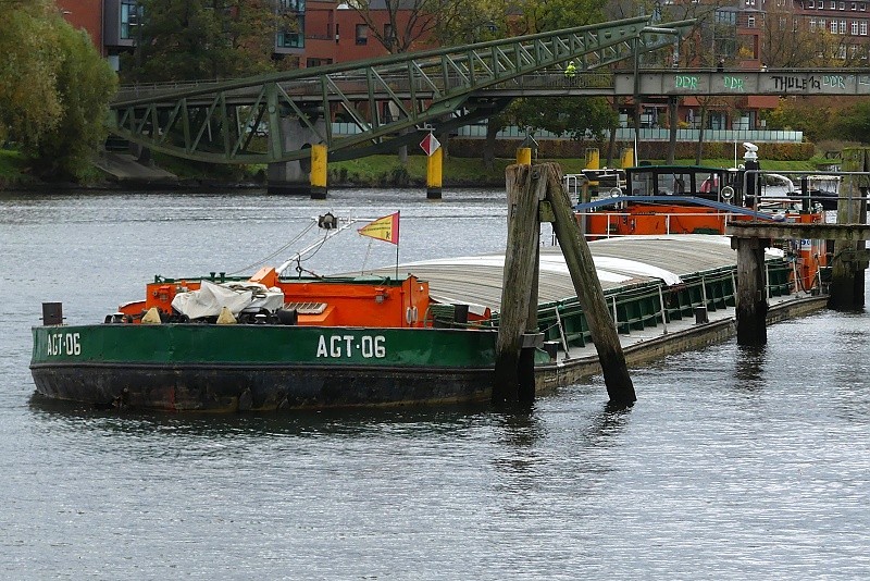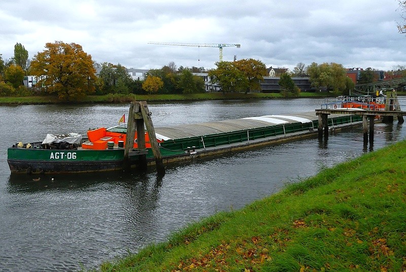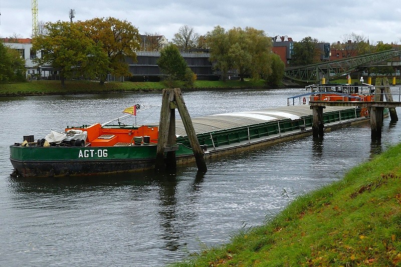 Im Klughafen liegt seit Donnerstagnachmittag das polnische Binnenschiff AGT-06 in Warteposition: