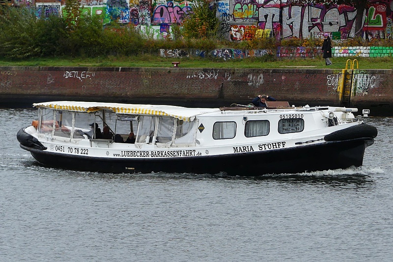 Bei ziemlich ruppigem Wind war auch heute die Hafenbarkasse MARIA STÜHFF auf Rundfahrt um die Altstadtinsel: