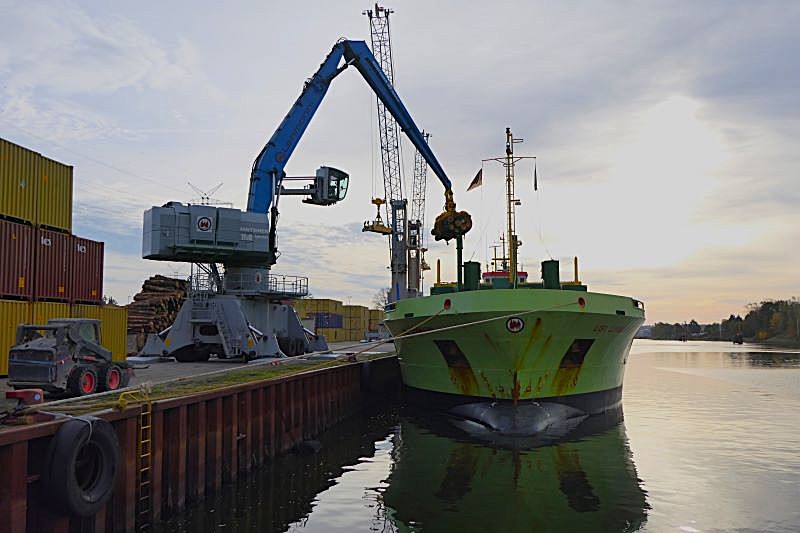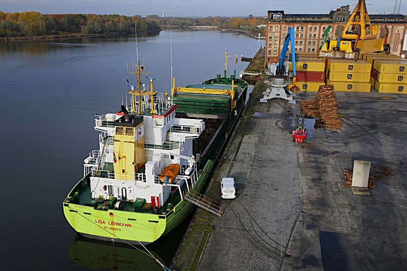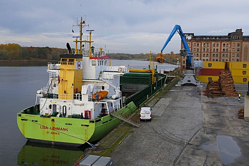 …und bei der MS LISA LEHMANN wurde am CTL Siems die Ladung Rundholz gelöscht…heute Nachmittag ging es dann raus nach Gdynia: