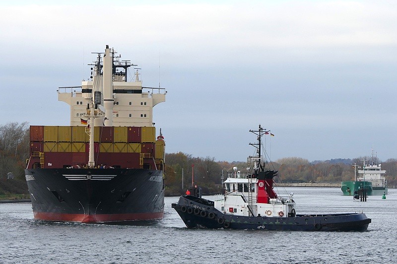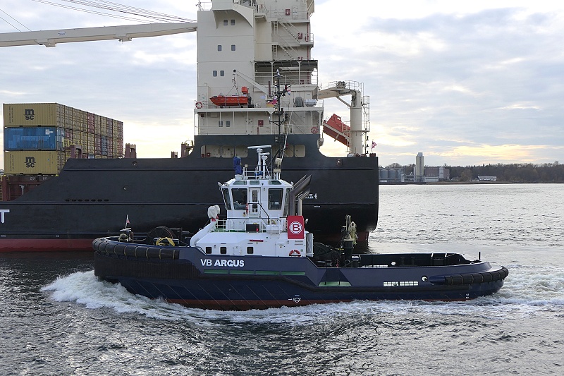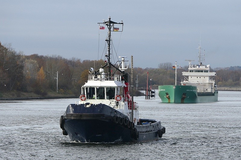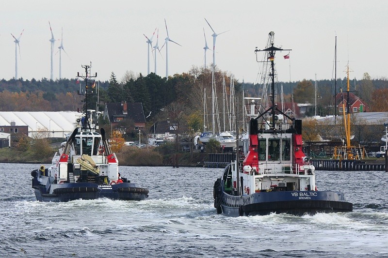 Zur Assistenz bei diesem wohl nicht einfach zu fahrendem Schiff waren heute wieder die zwei Schlepper VB ARGUS und VB BALTIC im Einsatz…nach Passage der Herrenenge wurden beide aus dem Dienst entlassen und überholten dann ihren “Kunden”:
