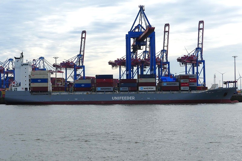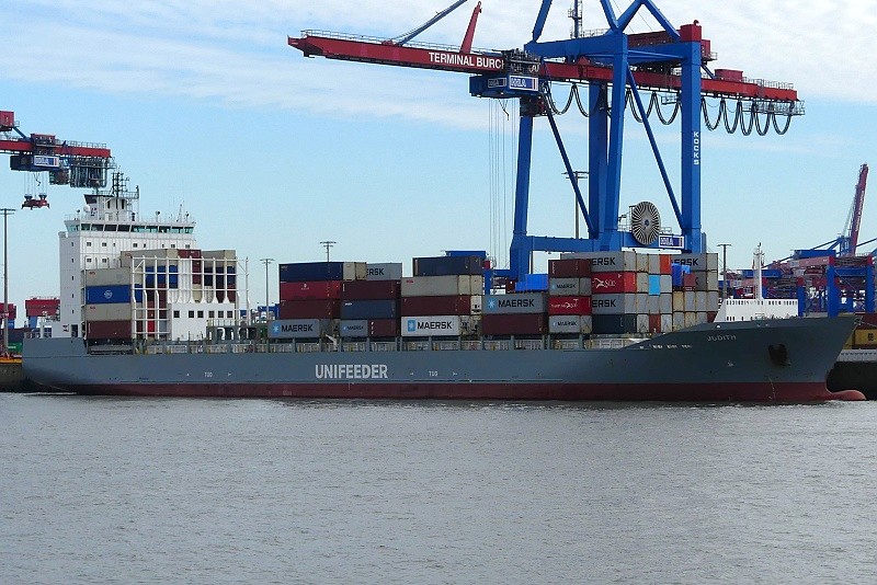 03.10.2025: Am Nachmittag gegen 15:05 Uhr lag der Feeder MS JUDITH in der Abfertigung am Burchardkai: