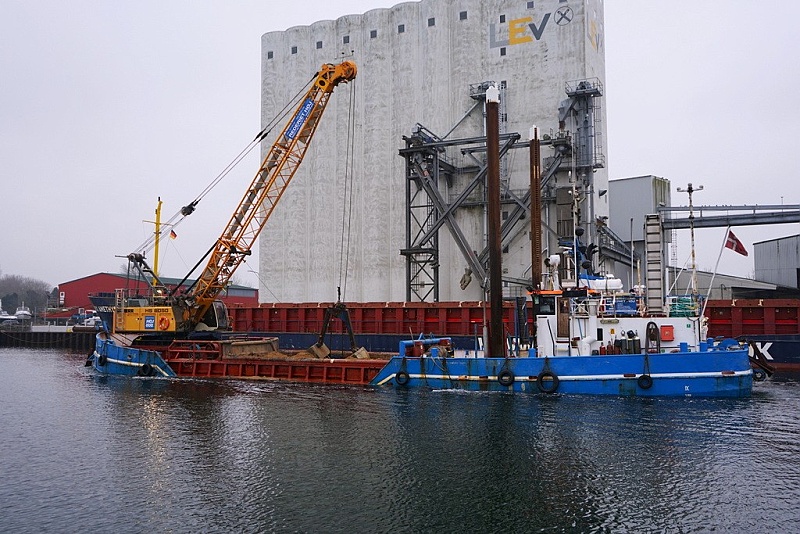 Das Taucher-, Bau und Reinigungsschiff MS ELISABETH HOEJ lag am Vormittag zwischen Arbeiten südlich von Fehmarn am Kai in Heiligenhafen…zum Zeitpunkt der Aufnahmen ging es wieder raus in Richtung Strukkamphuk: