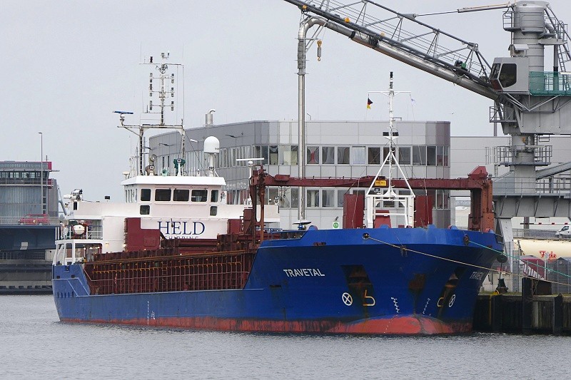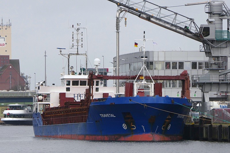 - MS TRAVETAL ( YLSB, Latvia, 90 m, IMO 9471991 ) bei Brüggen