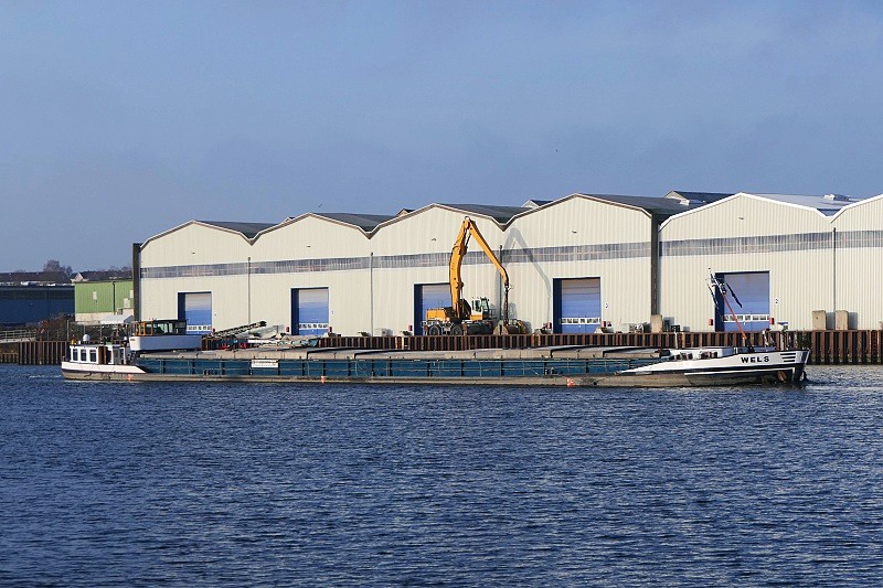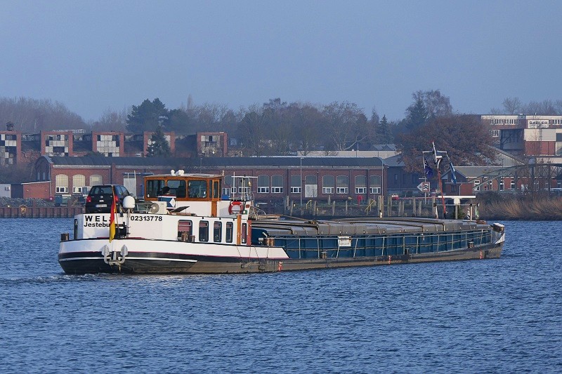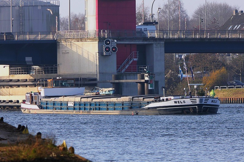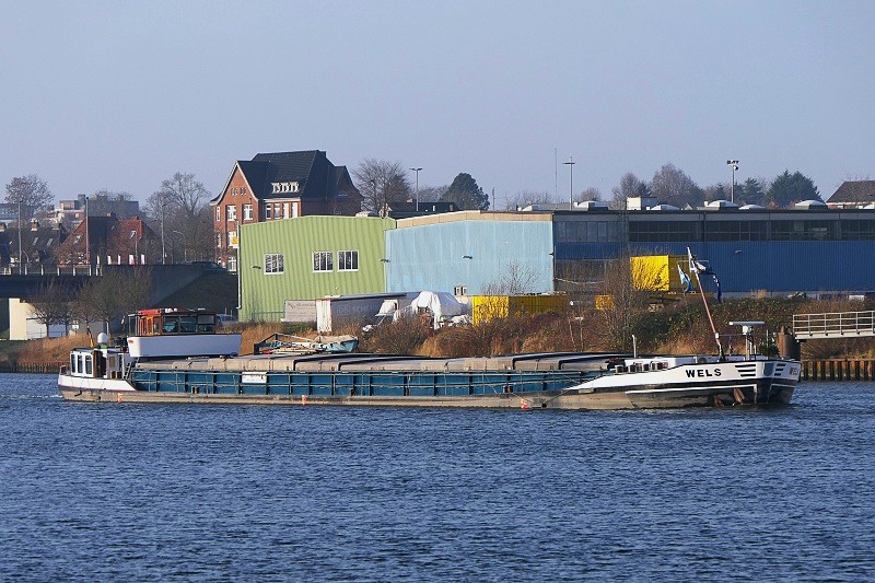 Am Vormittag lief das Binnenschiff WELS nach Lübeck ein und passierte hier mit einer Ladung Anhydrit den Konstinkai mit Ziel Lehmannkai 1: