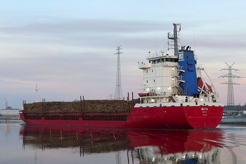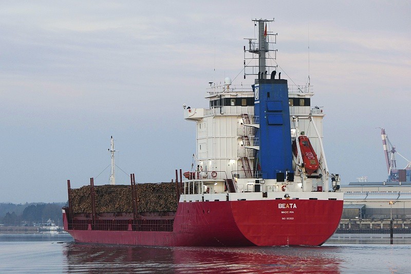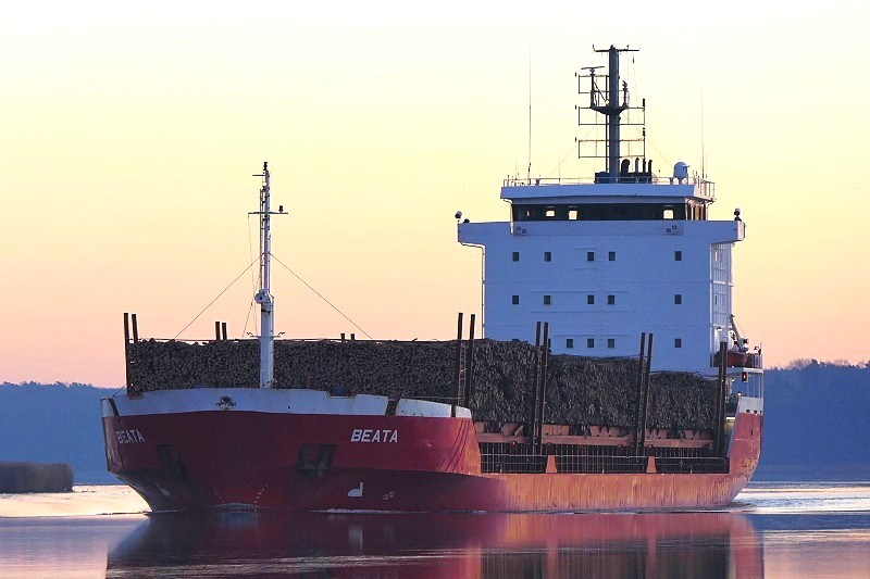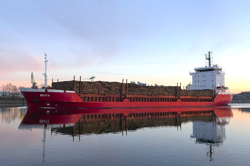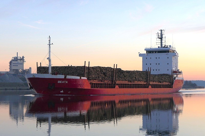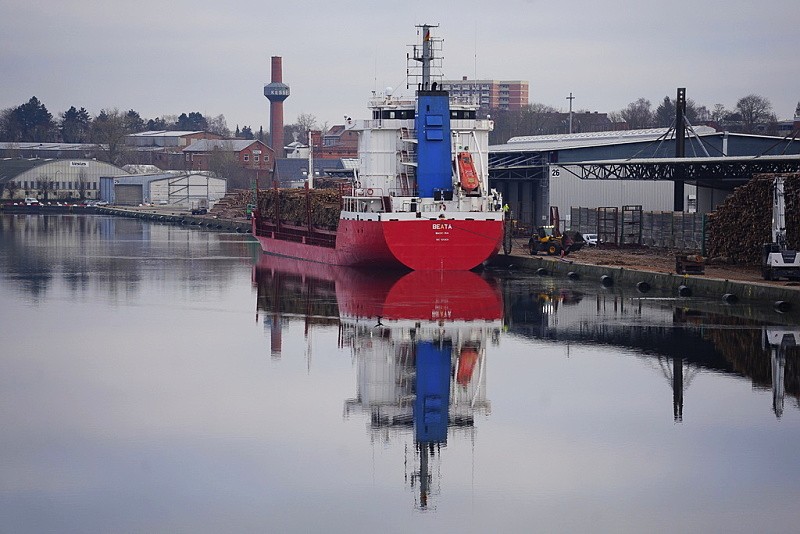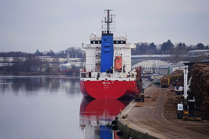 Heute früh lief die MS BEATA mit einer Ladung Rundholz nach Lübeck ein…gegen 08:40 Uhr passierte sie Schlutup auf dem Weg zum Konstinkai: