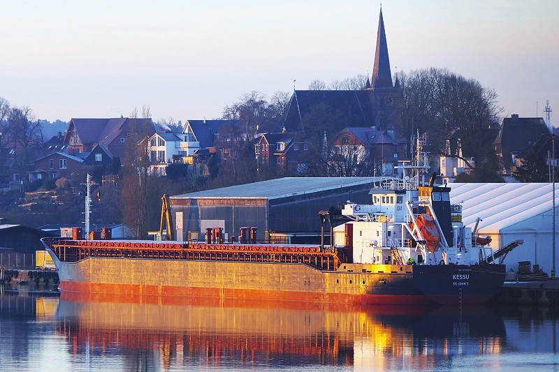 - MS KESSU ( V2HS7, Antigua and Barbuda, 107 m, IMO 9519808 ) am Schlutupkai 1
