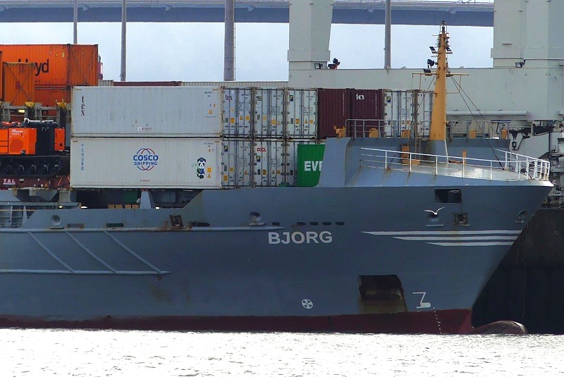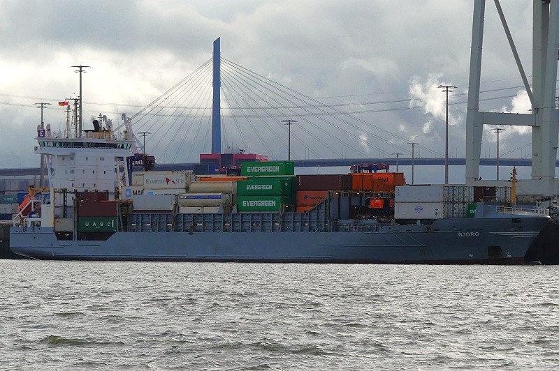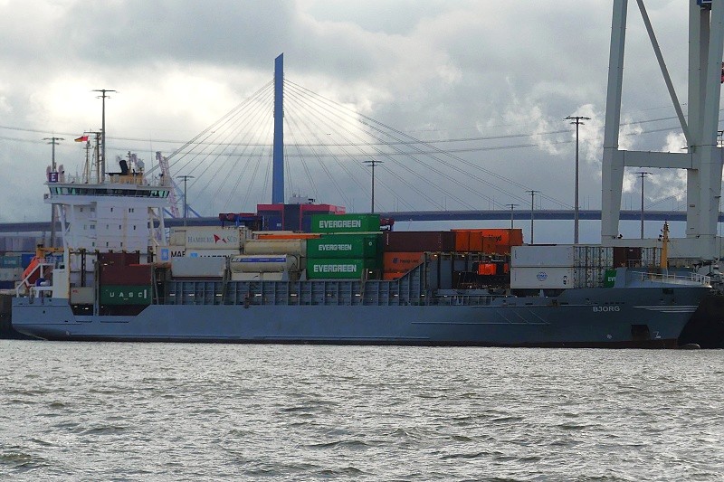 12.10.2025: Am Nachmittag gegen 15:35 Uhr lag der Feeder MS BJORG in der Abfertigung am Container Terminal Tollerort: