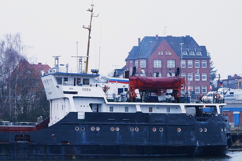 17.01.2009: MS VERA in Warteposition am Lagerhaus Lübeck…das 1976 auf der ZAVODY TAZKEHO STROJARSTVA – KOMARNO, SLOVAKIA als VOLGO-BALT 192 gebaute Schiff fuhr von 2006 bis 2009 als VERA unter der Flagge von Kambodscha…als MS RAINBOW unter der Flagge Palaus ging es 2020 zum Abwracken nach Aliaga: