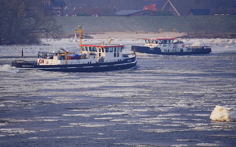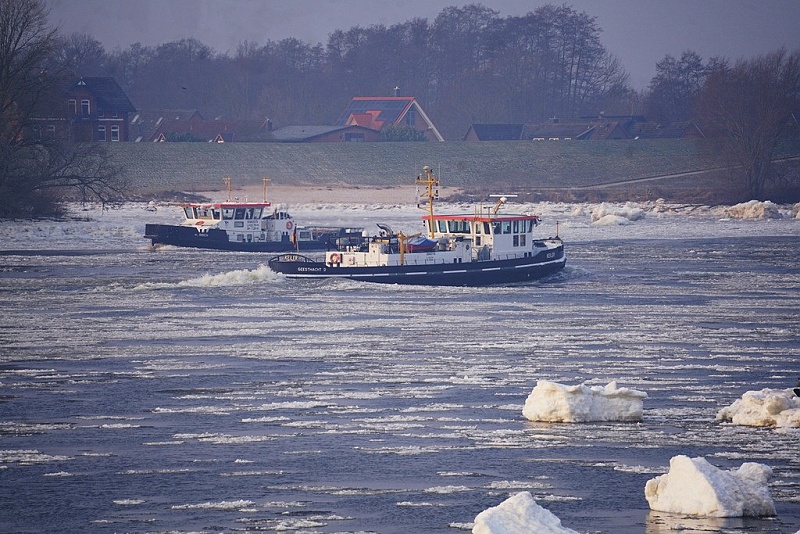 Der heutige Bericht kommt heute aus Geesthacht an der Elbe…dort kämpfen mehrere Eisbrecher im Dauereinsatz gegen meterhohe Eisberge, der Schiffsverkehr steht still…Ursache für das Chaos sind eisige Temperaturen bis minus 10,8 Grad und Niedrigwasser…das sogenannte Grundeis bildete sich am Boden, stieg auf und blockierte die Oberfläche…unter den Einbrechern ist auch der KEILER, ein Schiff mit 1.100 PS, das sich immer wieder direkt auf die Barrieren setzt und das Eis zerdrückt…auch die Eisbrecher WISENT, BÜFFEL und EBER (ebenfalls im Bild) sind im Einsatz und versuchen, die Fahrrinne freizumachen: