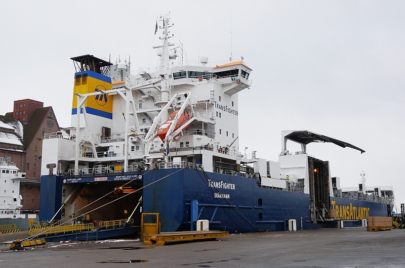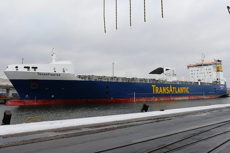 11.02.2009: MS TRANSFIGHTER unter Entlöschung einer Ladung Papier am Nordlandkai Anl. 1…das 2001 auf der GDYNIA SHIPYARD – POLAND als FINNFIGHTER gebaute Schiff fuhr von 2009 bis 2023 als TRANSFIGHTER unter schwedischer Flagge (später Malta und Bahamas)…2023 wurde es an die Karadeniz Energy Group, Istanbul verkauft und umgebaut in ein schwimmendes Kraftwerk (Floating Power Plant)…es ging unter die Flagge Liberias und wurde umgetauft in MS KARADENIZ POWERSHIP EMRE BEY…es liegt derzeit stationiert im Hafen von Guayaquil in Ecuador: