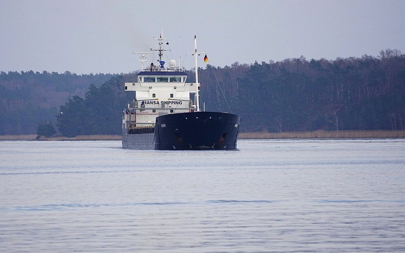 Eine knappe halbe Stunde später lief die MS KARIN nach Lübeck ein und passierte hier Schlutup auf dem Weg zum Nordlandkai: