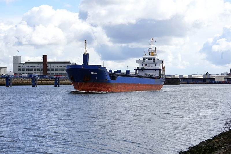 Gegen Mittag lief die MS NINA in Ballast nach Lübeck ein…gegen 12:50 Uhr passierte sie die Herreninsel auf dem Weg zum Weizen laden am Silo Vorwerker Hafen: