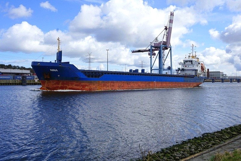 - MS NINA ( 5BTL4, Cyprus, 106 m, IMO 9277278 ) am Silo Vorwerker Hafen
