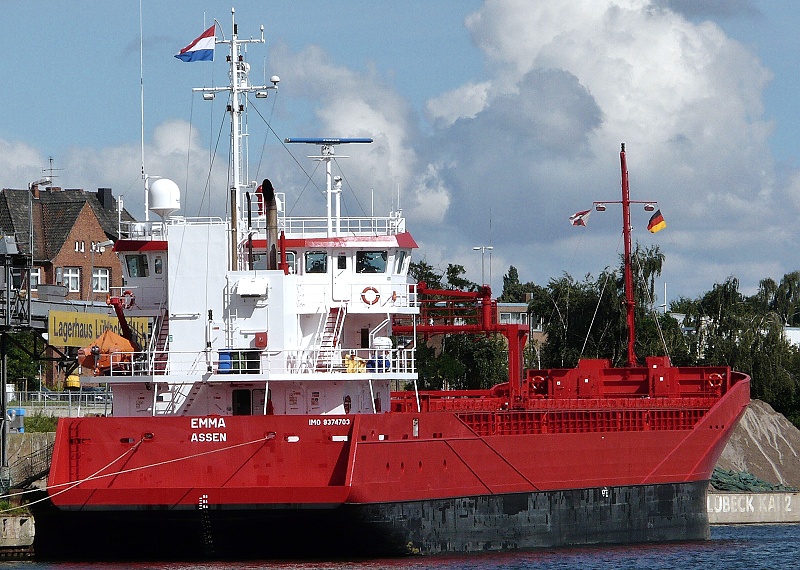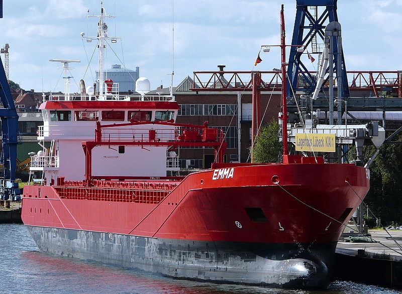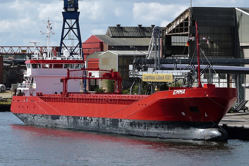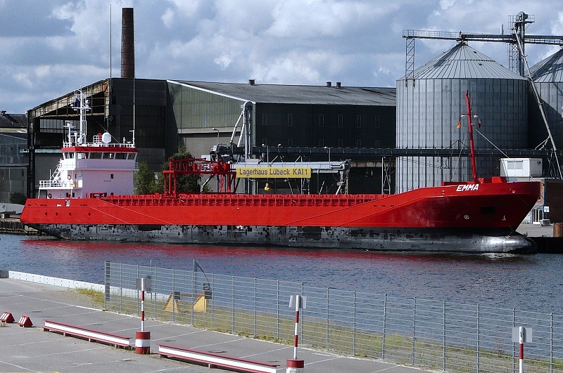 Seit dem frühen Abend liegt die MS ODERBORG mit einer Ladung Dünger am Lagerhaus Lübeck…hier noch als EMMA am 11.08.2012 nach Entlöschung: