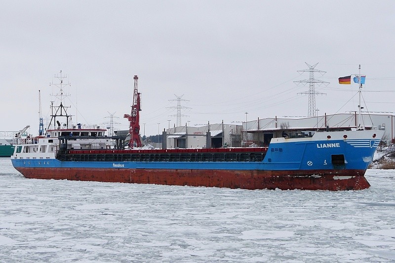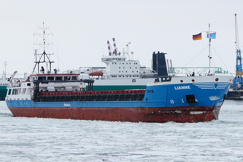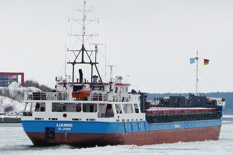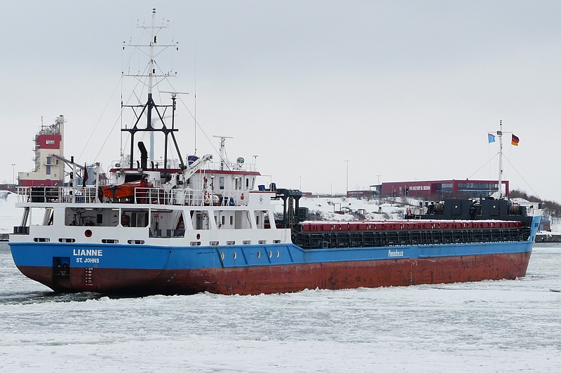 11.02.2010: MS LIANNE ausgehend in Höhe Schlutup…das 2007 auf der UMO SHIPPING INDUSTRY & TRADE – KARADENIZ EREGLI, TURKEY als MAYA 2 gebaute Schiff fährt seit 2007 als LIANNE unter der Flagge von Antigua and Barbuda…aktuell liegt es im Hafen von Immingham nach Ankunft aus Terneuzen: