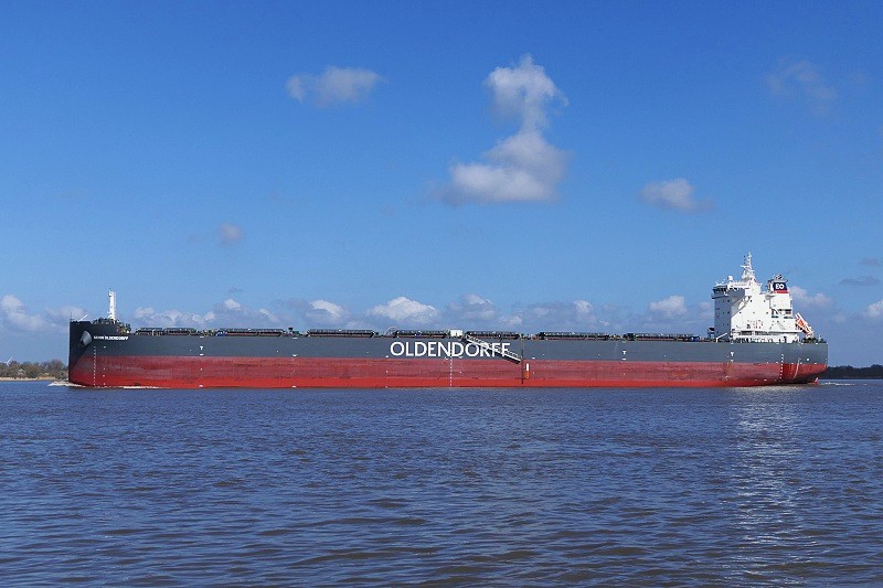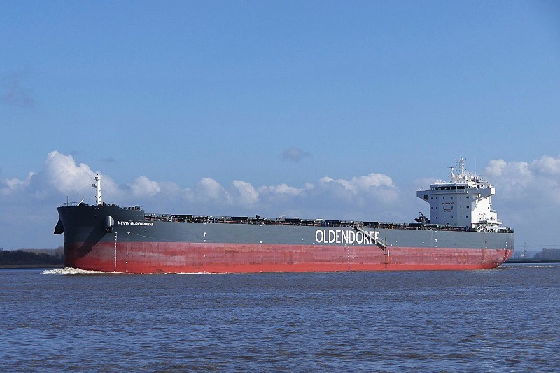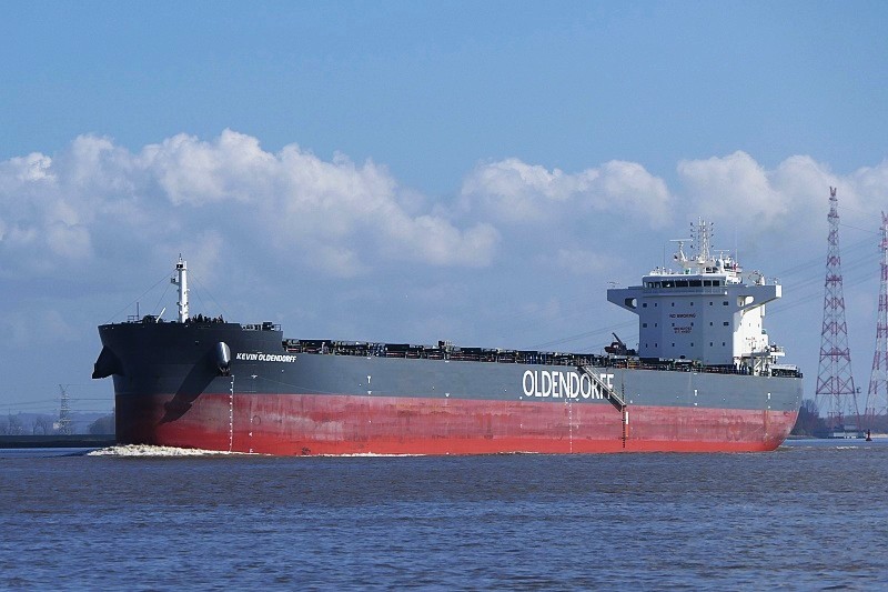 Die Bilder kommen auch heute nochmal von der Elbe am 01.04.2026…dort lief am Nachmittag der nagelneue Bulker KEVIN OLDENDORFF (Bj. 2026) vom Hansaport aus…gegen 14:45 Uhr passierte er Stadersand auf dem Weg nach Narvik: