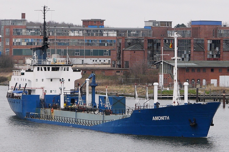 01.04.2009: MTS AMONITH eingehend Lagerhaus Lübeck in Höhe Nordlandkai…das 1972 auf der VAAGEN VERFT ENGINEERING – KYRKESAETERORA, NORWAY als POINTE DE LERVILY gebaute Schiff fuhr ab 2003 als AMONITH unter norwegischer Flagge…im Januar 2011 ging es zum Abwracken nach Aliaga in der Türkei: