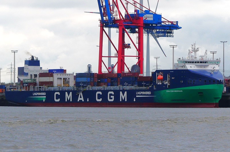 12.10.2025: Am Nachmittag gegen 16:00 Uhr lag die MS CMA CGM MERMAID in der Abfertigung am Eurogate Container Terminal…später ging es für sie weiter nach Aarhus: