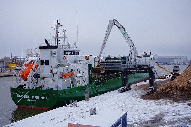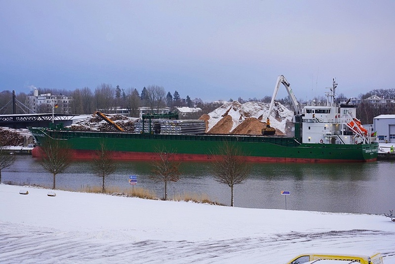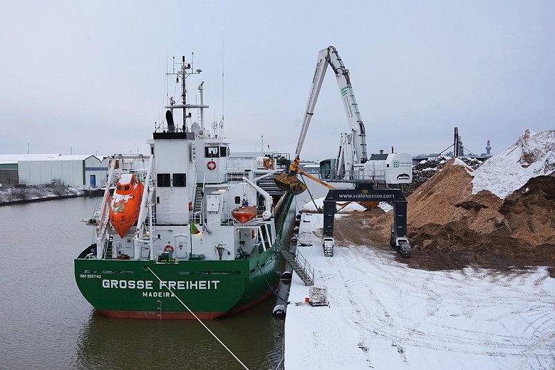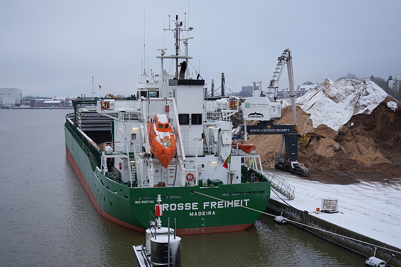 Am Konstinkai wurde am heutigen Sonntag die in der Frühe eingetroffene MS GROSSE FREIHEIT mit Holzhackschnitzeln beladen…die Aufnahmen zeigen den Stand der Arbeiten am späten Vormittag…am Nachmittag ging es bereits wieder raus nach Kopenhagen: