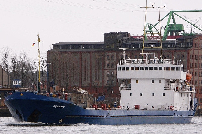 22.02.2009: MS PORHOV eingehend in Höhe Gothmund…das 1979 auf der STX FINLAND TURKU als BALTIYSKIY-105 gebaute Schiff fuhr von 2008 bis 2021 als PORHOV unter der Flagge von Belize…als MS GAUJA unter der Flagge Kameruns ging es 2024 zum Abwracken nach Aliaga: