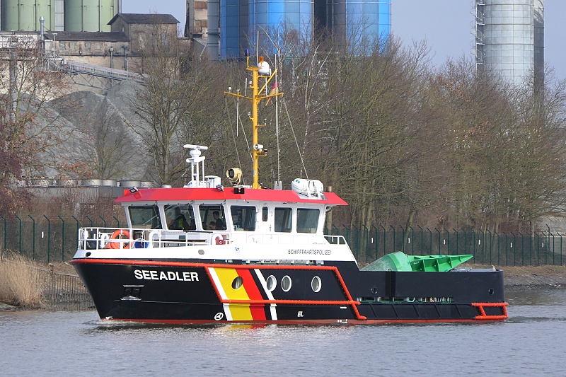 Das Seezeichenmotorschiff SEEADLER der Schifffahrtspolizei passierte Schlutup traveaufwärts: