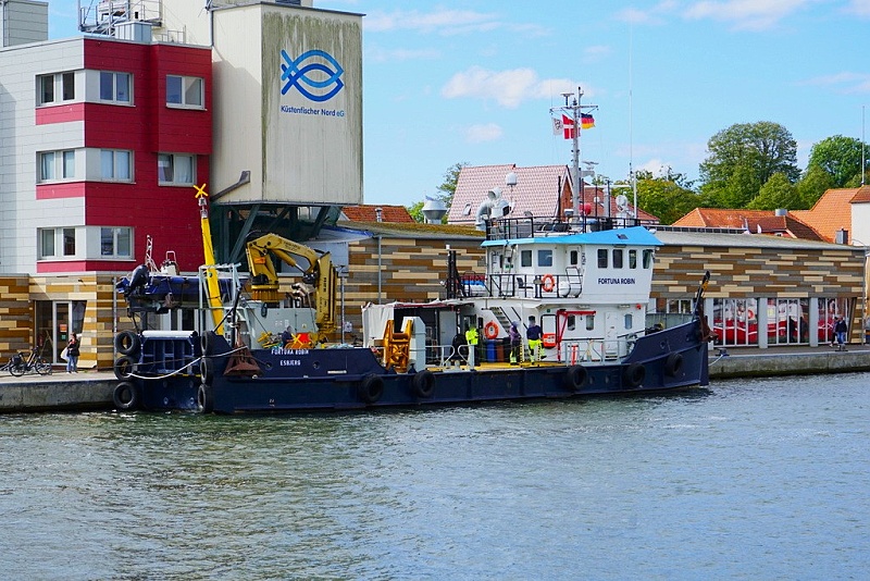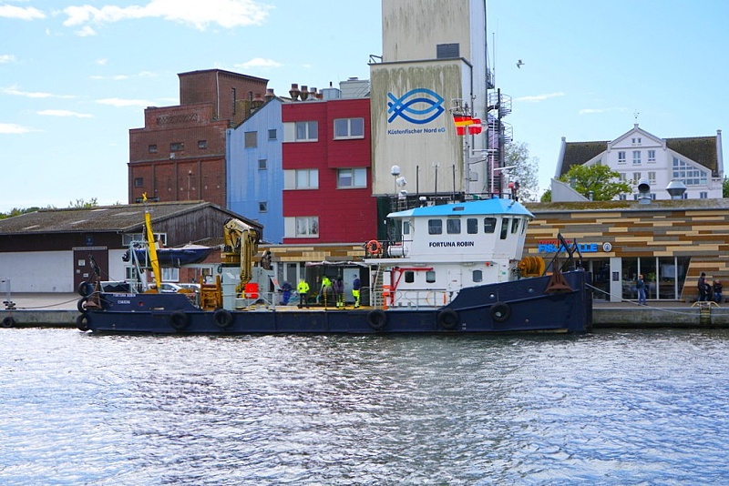 Ebenfalls in Heiligenhafen hielt sich das nunmehr dänische Multi Purpose Vessel MS FORTUNA ROBIN auf…das ehemalige Lübecker Bitunamelschiff NOORSUPPLY machte sich später wieder auf den Weg nach Rodbyhavn:
