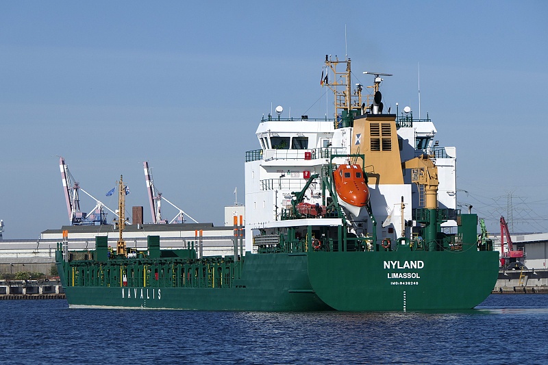 - MS NYLAND ( 5BNH2, Cyprus, 119 m, IMO 9436240 ) am Lehmannkai 2