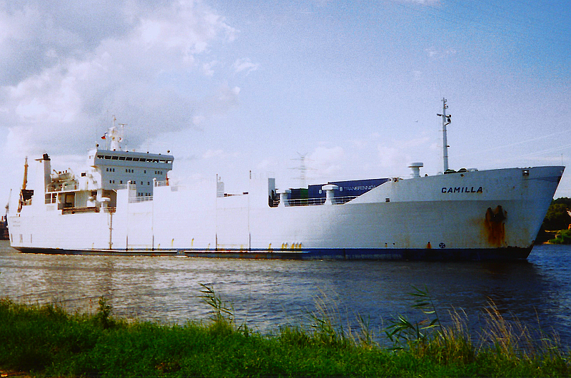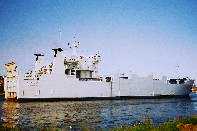 November 1997: MS CAMILLA ausgehend in Höhe Schlutup…das 1982 auf der KRÖGER WERFT – RENDSBURG gebaute Schiff fuhr bis 2004 als CAMILLA unter finnischer Flagge…danach wurde das Schiff an die kanadische Reederei Desgagnés Transport verkauft, die es unter dem Namen CAMILLA DESGAGNÉS betrieb…2017 ging es an die russische Reederei TransMorFlot, die das Schiff in CAMILLA D umbenannte…2022 wurde das Schiff zum Abbruch in Alang verkauft: