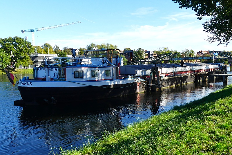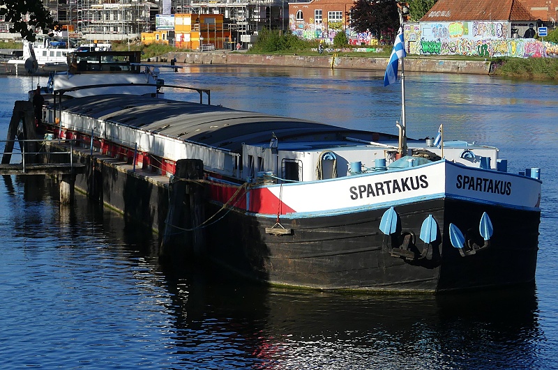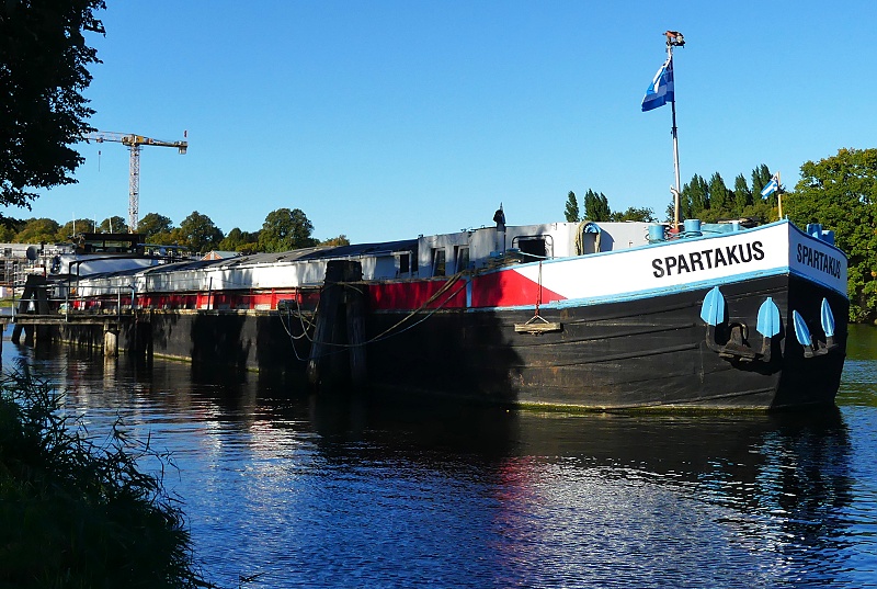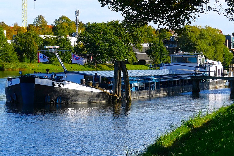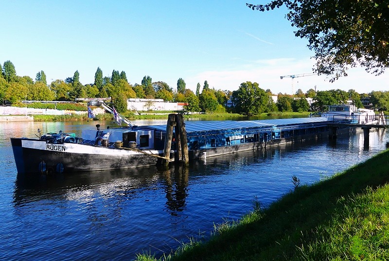 Zum Binnenschiff SPARTAKUS nördlich der Klughafenbrücke gesellte sich vor vier Tagen das Binnenschiff RÜGEN: