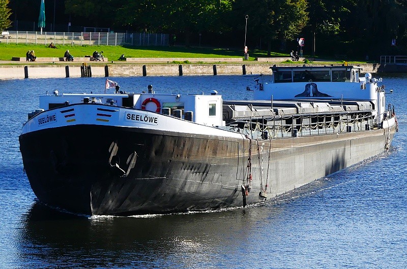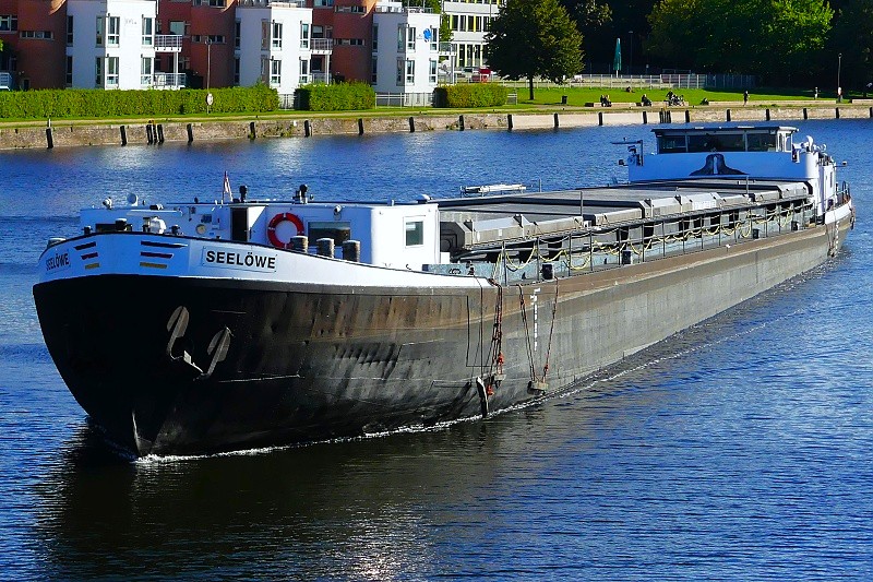 Am Nachmittag lief das Binnenschiff SEELÖWE nach Lübeck ein und passierte hier die Klughafenbrücke in Richtung Lagerhaus Lübeck: