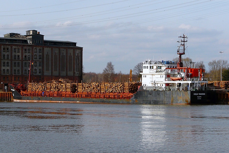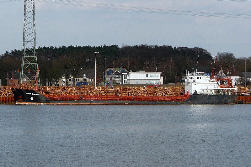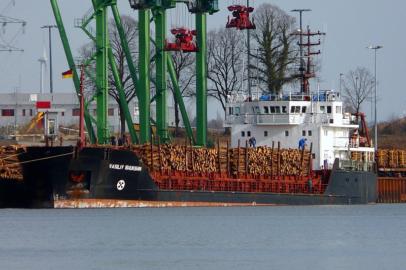 22.03.2010: MS VASILIY SHUKSHIN mit einer Ladung Rundholz am CTL Siems…das 1995 auf der VOLGOGRAD SHIPBUILDING, RUSSIA gebaute Schiff fährt seit Indienststellung unter diesem Namen und diversen Flaggen, seit 2013 der von Belize…aktuell ist es auf dem Weg von Busan in Südkorea ins russische Vostochny in Höhe Pohang (Südkorea):